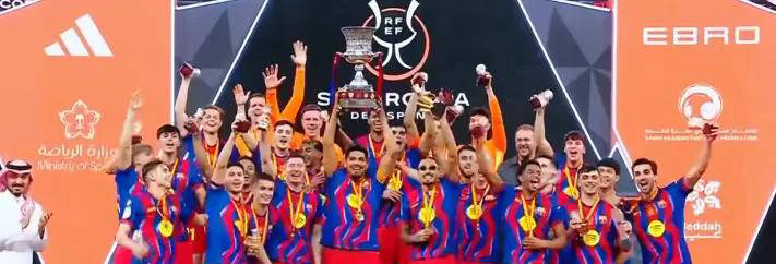 拉菲尼亚封神之夜!巴萨3-2逆转皇马勇夺西超杯,西甲冠军呼之欲出?